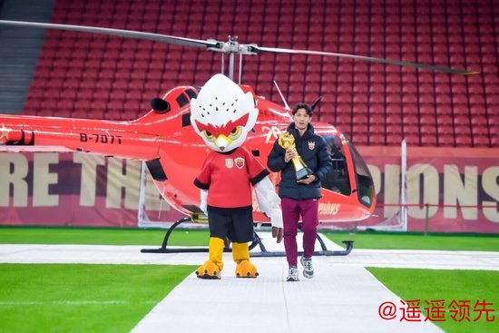 激动人心的夺冠视频过后,大家的目光被静候在内场的临港捷运纪念版直升机吸引,仪式开始前,这架直升机载着王燊超和奖杯从川沙飞抵球场。这一环节不仅是荣耀的展示,更是俱乐部积极探索“低空+足球”体旅融合新范式的生动实践。